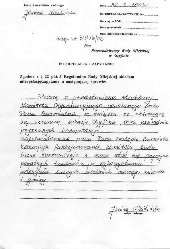 318/XIV/03 - interpelacja w załączeniu.