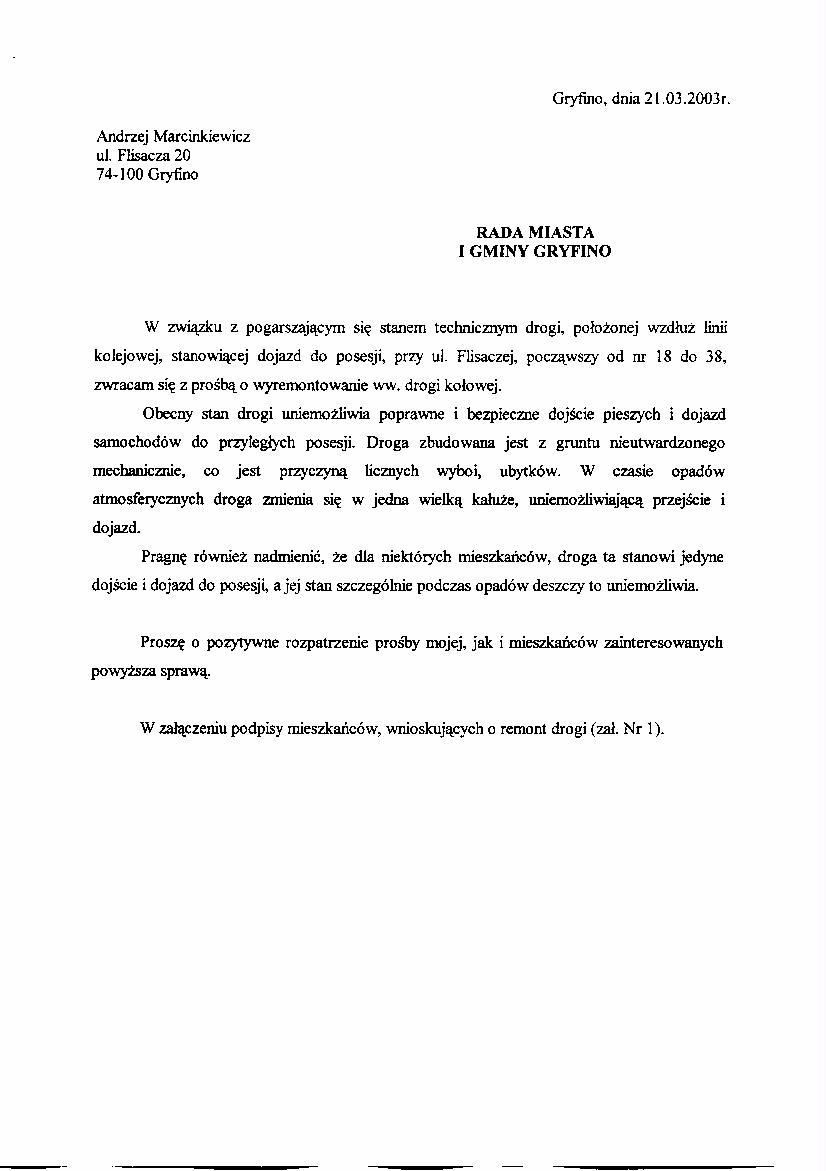 „Wnoszę o ściganie karne Zdzisława Kmieciaka, zamieszkałego w Czepinie 14, gmina Gryfino, radnego Rady Miejskiej w Gryfinie za popełnione przestępstwa z art. 244 kk oraz prawdopodobne popełnienie przestępstwa a art. 286 kk”. - załącznik nr 45. Takie pismo skierowałem do Przewodniczącego Rady Miejskiej. Dysponuję wypisami z akt sadowych, z których wynika, że nie tylko Pan Kmieciak ale również Pan Artur Nycz złamał prawo. Informacje w tej sprawie otrzymałem z Zachodniopomorskiej Wspólnoty Samorządowej. Ponadto wytknięto mi, że nie reaguję na to co pisze się w prasie na temat Gryfina. Jestem mile zaskoczony przebiegiem dzisiejszej sesji, z którego wynika, że w tym mieście dzieje się wiele i obecna Rada działa skutecznie. Jednak opinia w prasie jest negatywna, a przyczynili się do tego radni.
