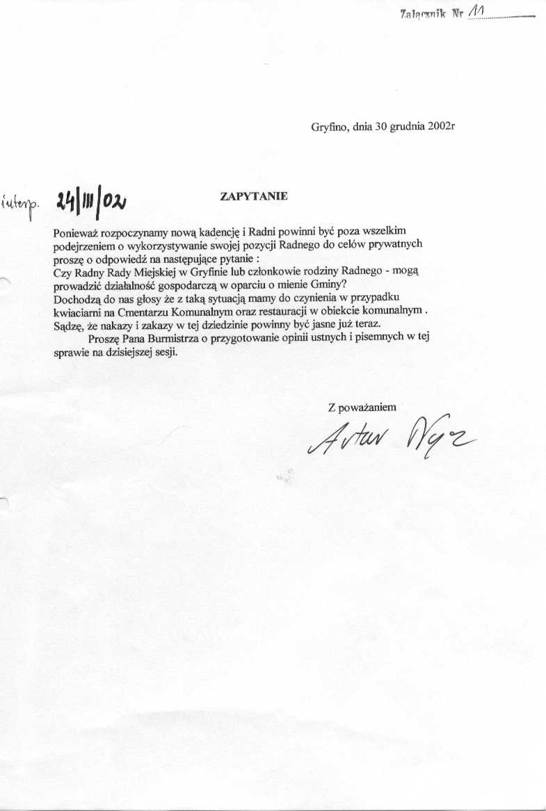 Radny Artur Nycz 24/III/02 - załącznik nr 11.