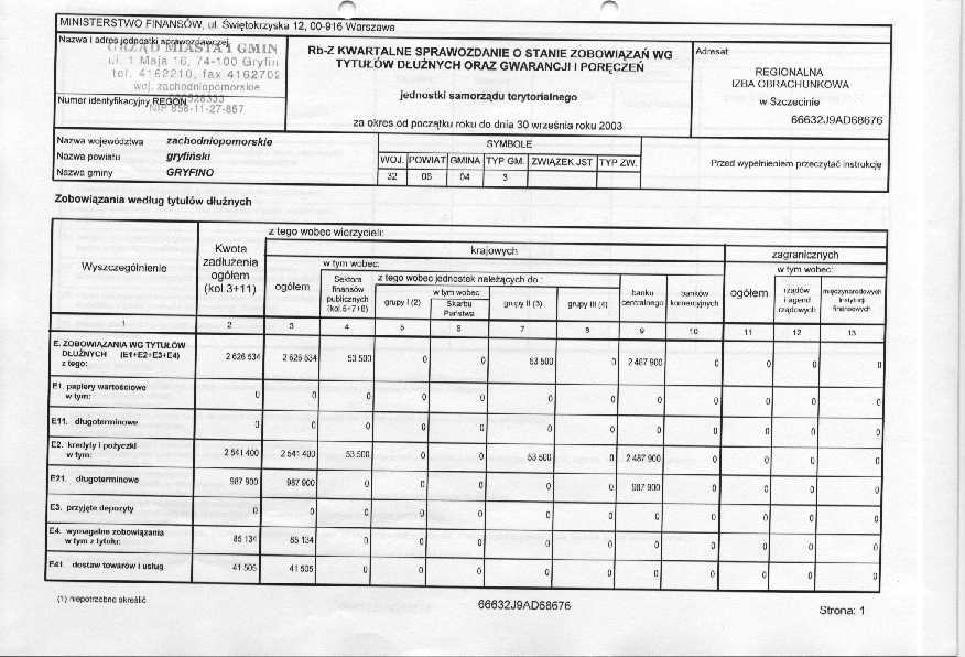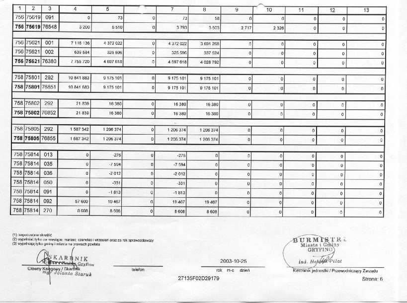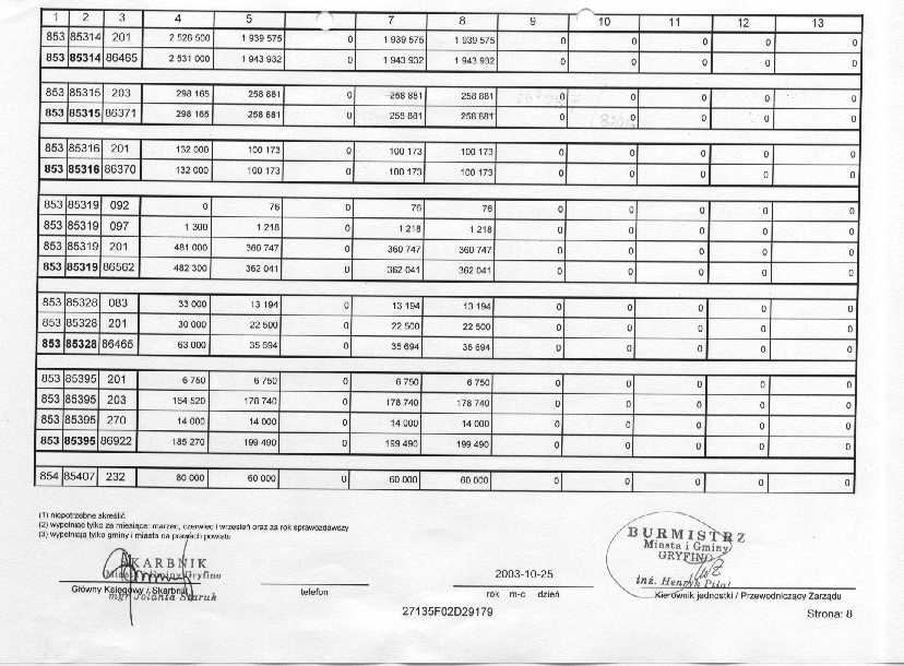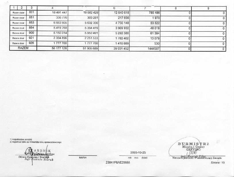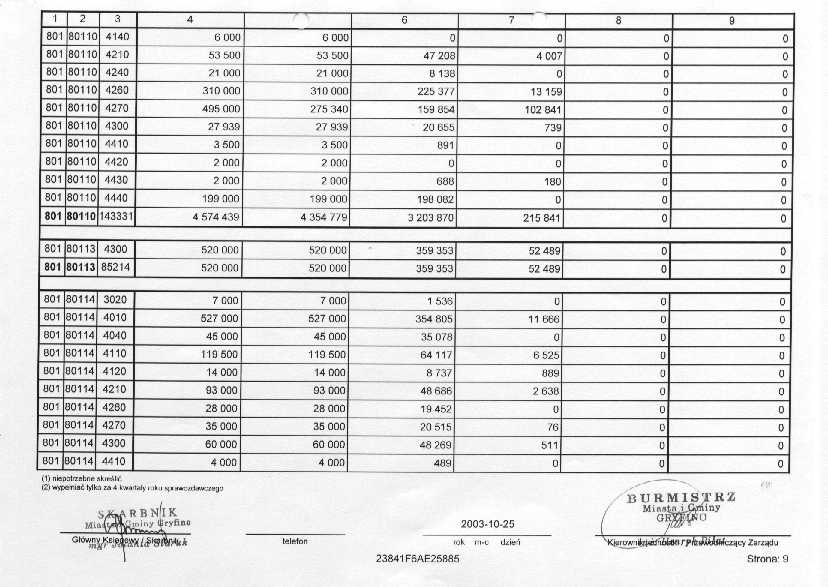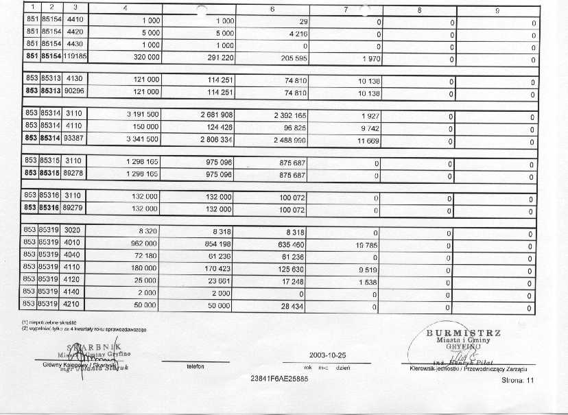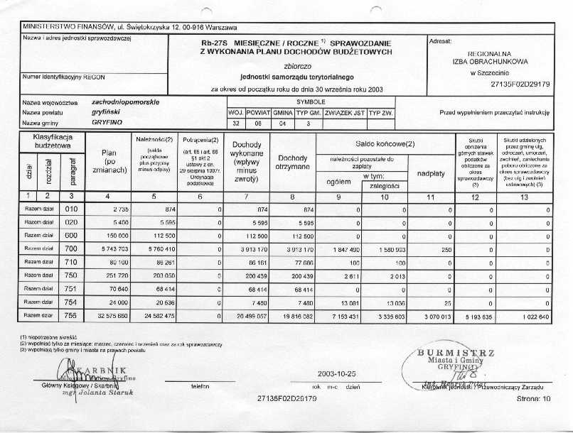 SPRAWOZDANIE z wykonania budżetu Gminy Gryfino od początku roku do dnia 30 września 2003.