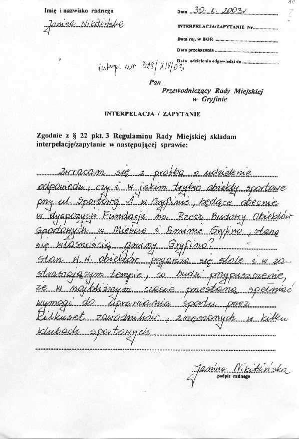 318/XIV/03 - interpelacja stanowi załącznik nr 10.