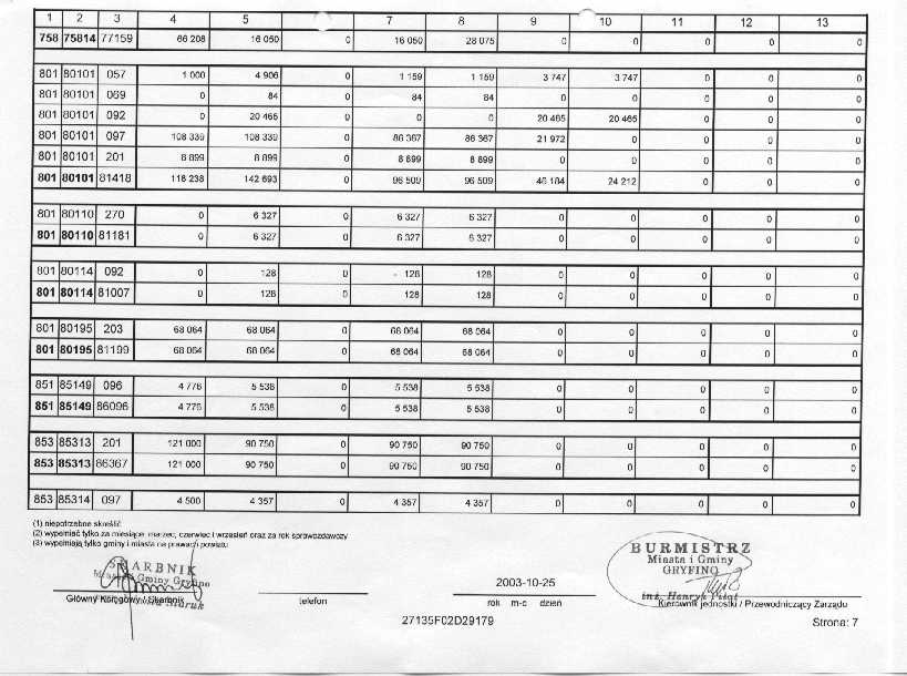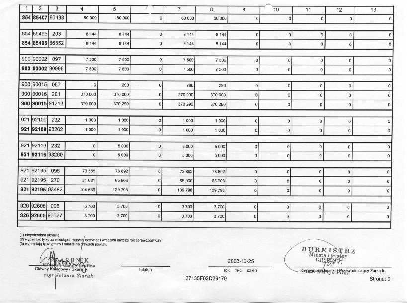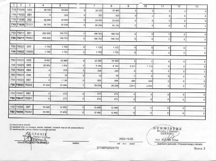 SPRAWOZDANIE z wykonania budżetu Gminy Gryfino od początku roku do dnia 30 września 2003.