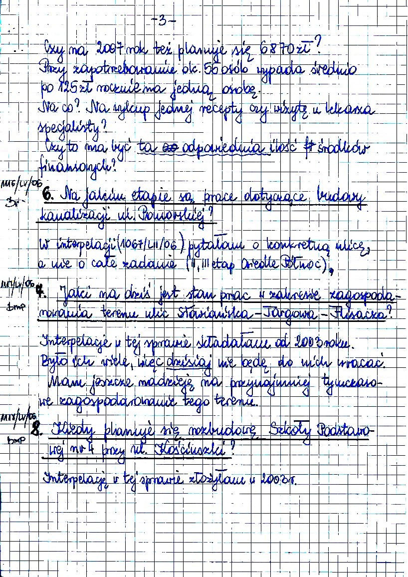 1160/LV/06 – w czerwcu interpelowałem w sprawie źle działającej sygnalizacji świetlnej na skrzyżowaniu ul. Asnyka i ul. 9 Maja koło sklepu Intermarche. Otrzymałem odpowiedź, że światła te zostały zmienione, ale do dziś nic się nie zmieniło, sygnalizacja nadal źle działa, powodując chaos na tym skrzyżowaniu. Proszę o zajęcie się sprawą.