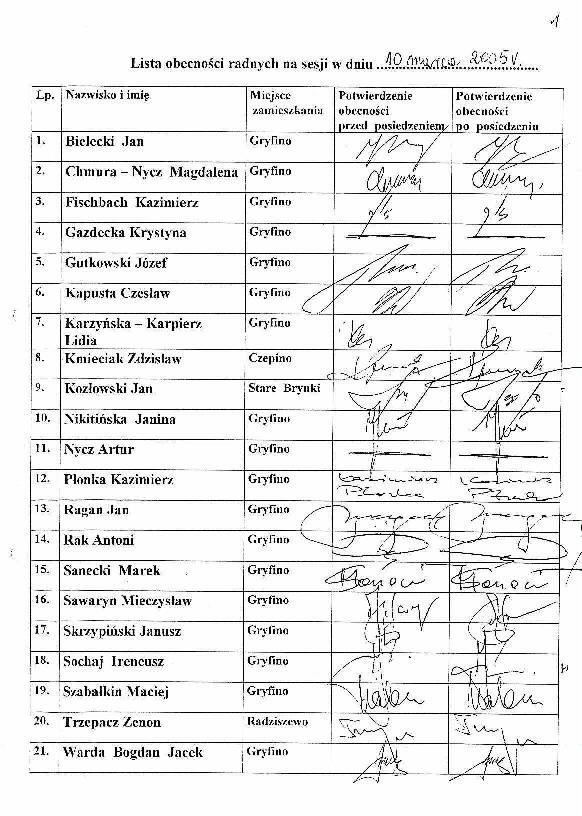 - Lista obecności radnych - załącznik nr 1,