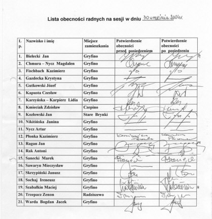 - Lista obecności radnych - załącznik nr 1,