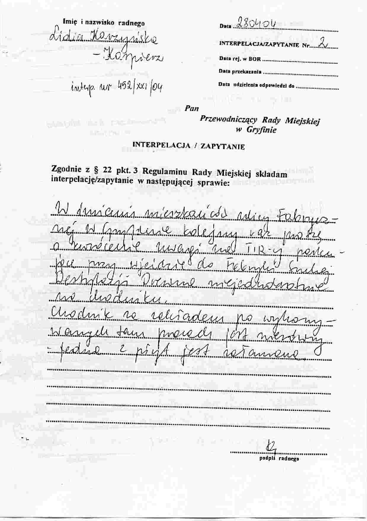 452/XXI/04 -pisemna interpelacja w załączeniu.