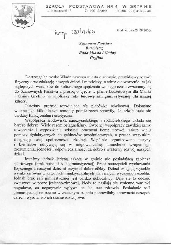 wszystkie sprawozdania Burmistrza Miasta i Gminy Gryfino od stycznia br. i nie znalazłam żadnej wzmianki w tej sprawie. Proszę o pisemną odpowiedź.