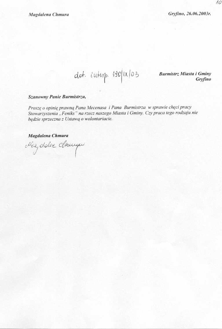 176/IX/03 - przy realizacji wniosku Komisji Spraw Społecznych i Bezpieczeństwa Społecznego dotyczącego ufundowania sztandaru dla Miasta i Gminy Gryfino należy również pomyśleć o ufundowaniu insygniów władzy dla Przewodniczącego Rady i Pana Burmistrza. Należy to zrobić w porozumieniu ze związkiem heraldycznym.