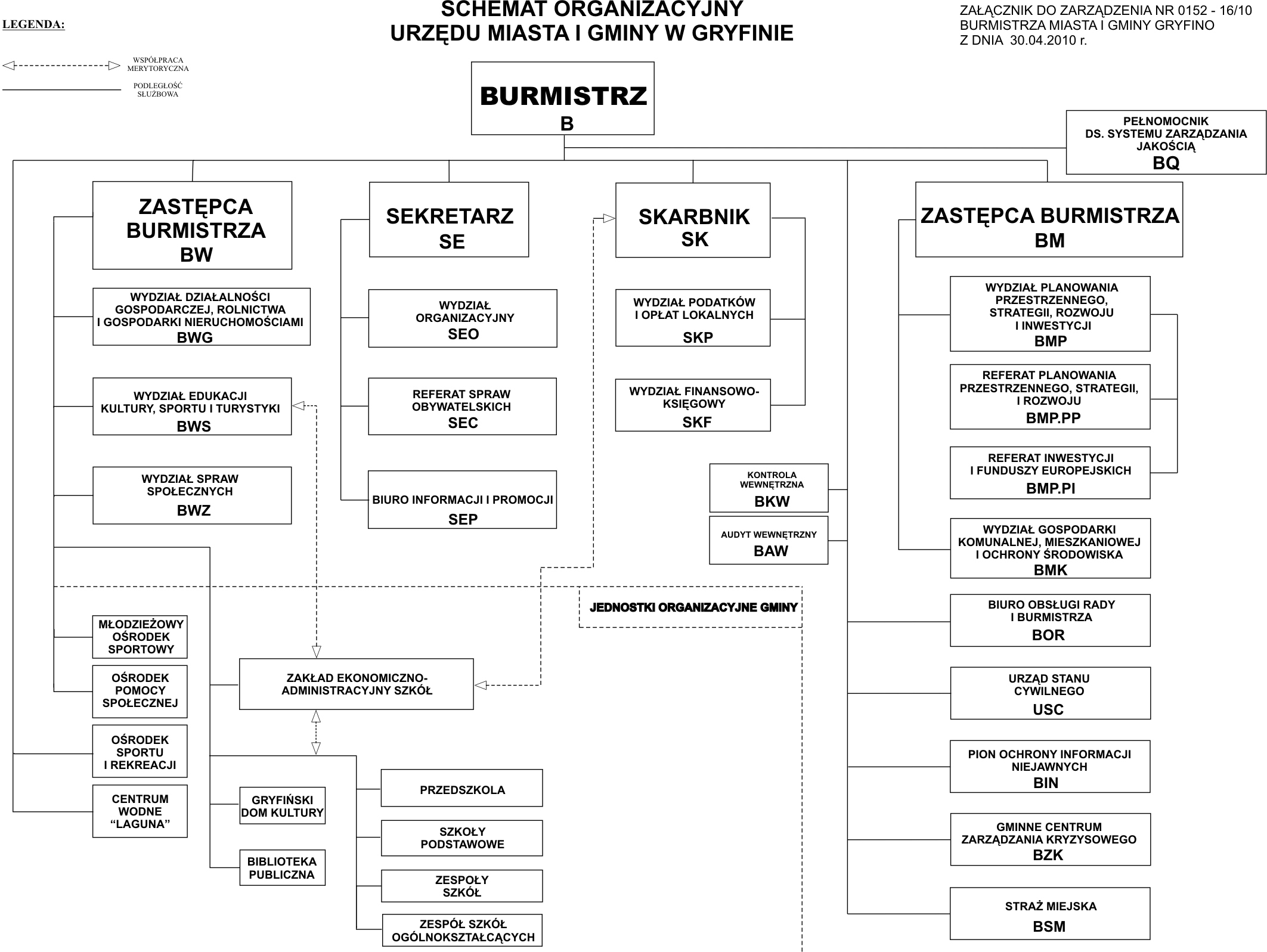 ZARZĄDZENIE Nr 0152-16/10 BURMISTRZA MIASTA GMINY GRYFINO z dnia 30 kwietnia 2010 r. w sprawie Regulaminu Organizacyjnego Urzędu Miasta i Gminy w Gryfinie