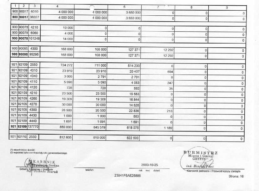 SPRAWOZDANIE z wykonania budżetu Gminy Gryfino od początku roku do dnia 30 września 2003.